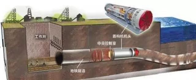 使用盾構(gòu)機(jī)在地中推進(jìn),通過盾構(gòu)外殼和管片支撐四周圍巖,防止發(fā)生隧道內(nèi)的坍塌,同時(shí)在開挖面前方用刀盤進(jìn)行土體開挖,通過出土機(jī)械運(yùn)出洞外,靠推進(jìn)油缸在后部加壓頂進(jìn),并拼裝預(yù)制混凝土管片,形成隧道結(jié)構(gòu)的一種機(jī)械化施工方法。