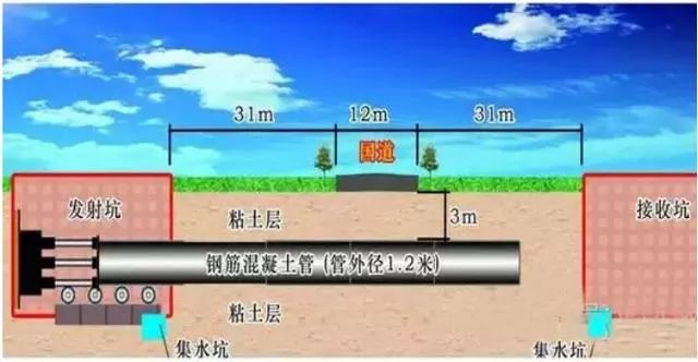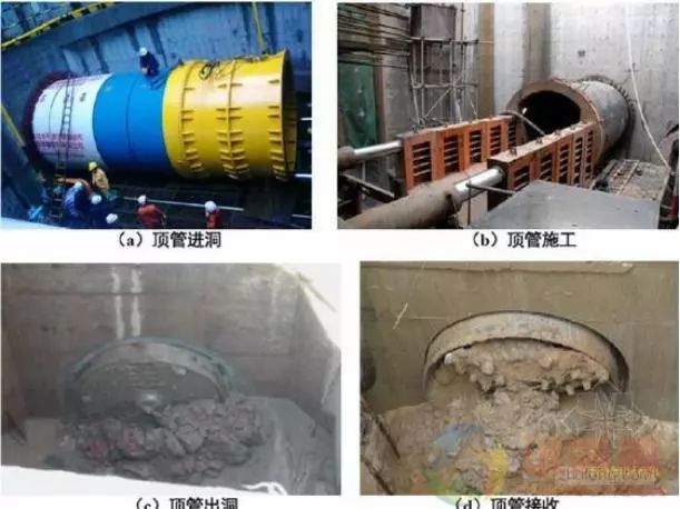 當(dāng)管廊穿越鐵路、道路、河道或建筑物等各種障礙物時(shí),采用一種暗挖式的施工方法。在施工中,通過傳力頂鐵和導(dǎo)向軌道,用支撐與基坑后座上的液壓千斤頂將管線壓入土層中,同時(shí)挖除并運(yùn)走管正面的泥土。適用于軟土或富水軟土層。無需明挖土方,對(duì)地面影響小;設(shè)備少、工藝簡單、工期短、造價(jià)低、速度快;適用于中型管道施工,但管線變向能力差,糾偏困難。